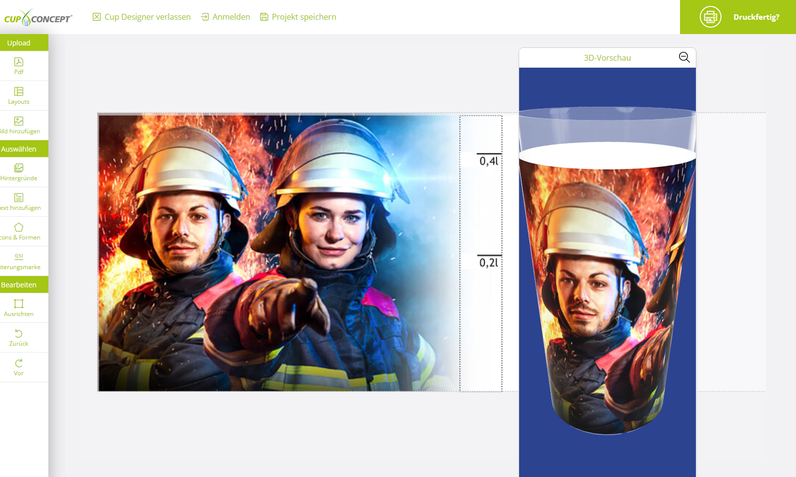 Personalisieren Sie Ihren Feuerwehrbecher ganz nach Ihren Wünschen mit unserem nutzerfreundlichen Design Tool.